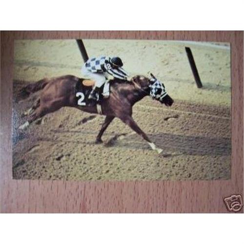 Rare Vintage "Secretariat" Postcard, given out at Belmont RaceTrack where (back of card says: Secretariat in full stride nears the finish line in the "1973 Belmont Stakes with Jockey - Ron Turcotte up. The cost won the race by 32 lengths and set a track and stakes record for the mile and a half of 2:24, also an American record for the distance on a dirt tracks. With the victory he became the ninth Triple Crown Winner. Card is in great shape especially for its age of 34 years. Minor scuffs/dings. Backside of postcard has minor yellowing due to age. Would look great "Framed". All sales are final. International shipping/insurance fees will be based on country code.