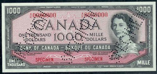 RARE SPECIMEN 1954 DEVILS FACE $1000. BC-36S A/K0000000 Original choice uncirculated. This is only the second example that we ever handled. Only 7 notes are known and six of them are in private collections which it makes this one the only one avail