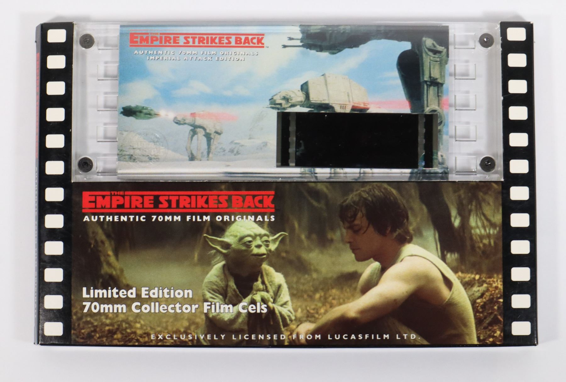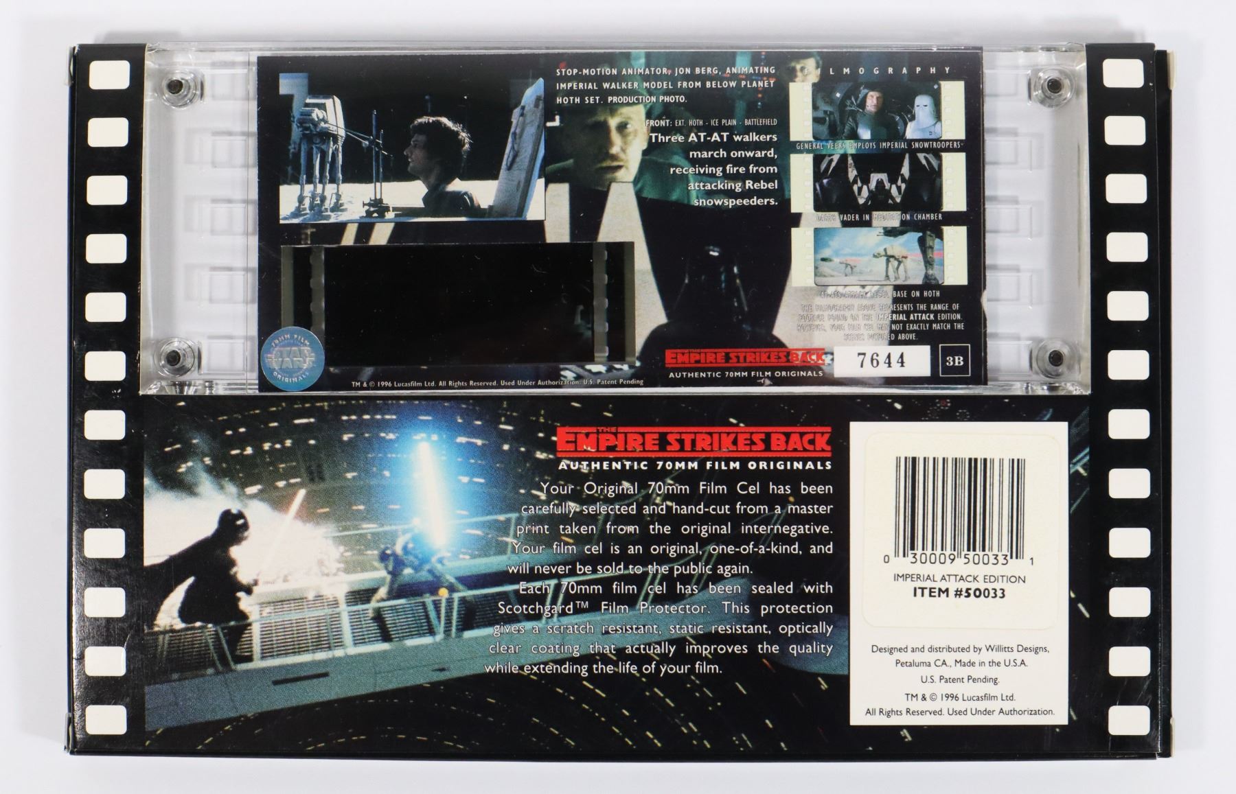 FILM CELS - THE EMPIRE STRIKES BACK. . WILLITTS DESIGNS: HARD TO FIND OFFICIALLY LICENSED 70MM FILM CELL HAND CUT FROM A MASTER PRINT AND EACH IS ONE OF A KIND. THE FILM CEL IS ENCASED IN AN ACRYLIC BOX WITH AN EXPLANATION OF THE MOVIE SCENE