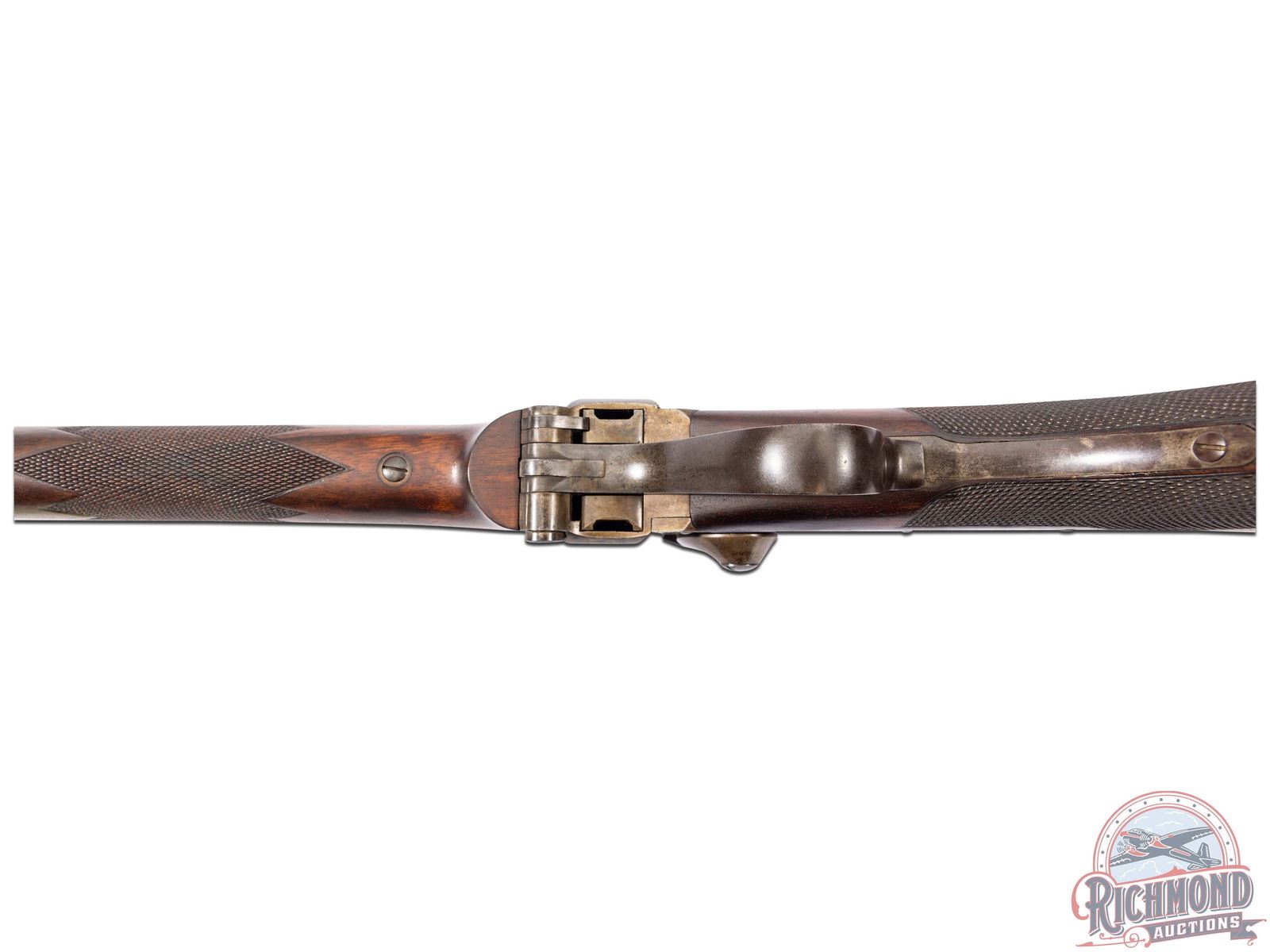 Disclaimer of Warranties: Bidder acknowledges and agrees that Richmond is acting as auctioneer of property owned by third parties. Unless expressly provided otherwise in these Terms, all items are sold "AS-IS" AND RICHMOND MAKES NO WARRANTY WHATSOEVER WITH RESPECT TO THE ITEMS AUCTIONED (THE "ITEMS"), WHETHER EXPRESS OR IMPLIED BY LAW, COURSE OF DEALING, COURSE OF PERFORMANCE, USAGE OF TRADE, OR OTHERWISE INCLUDING BUT NOT LIMITED TO ANY (A) WARRANTY OF MERCHANTABILITY; (B) WARRANTY OF FITNESS FOR A PARTICULAR PURPOSE; (C) WARRANTY OF TITLE; (D) WARRANTY AGAINST INFRINGEMENT OF INTELLECTUAL PROPERTY RIGHTS OF A THIRD PARTY; OR (E) WARRANTY AS TO THE ITEM'S AUTHENTICITY, PHYSICAL CONDITION, SIZE, QUALITY, RARITY, IMPORTANCE, PROVENANCE, OR HISTORIC RELEVANCE. IN THE EVENT THE ITEMS CONSIST OF FIREARMS AND AMMUNITION, THE ITEMS ARE SOLD AS COLLECTOR LOTS ONLY. BIDDER IS NOT RELYING ON ANY REPRESENTATION, WARRANTY OR STATEMENT FROM RICHMOND IN ATTENDING, OR PARTICIPATING IN ANY AUCTION OR OTHERWISE BIDDING OR PURCHASING ANY ITEM IN AN AUCTION OPERATED BY RICHMOND. FITNESS TO FIRE OR OTHERWISE DISCHARGE THE ARM OR AMMUNITION IS EXPRESSLY DENIED BY RICHMOND. A COMPETENT GUNSMITH SHOULD BE CONSULTED BEFORE ATTEMPTING TO USE OR FIRE ANY FIREARM OR AMMUNITION. THE BIDDER EXPRESSLY ACKNOWLEDGES AND AGREES THAT IN NO EVENT SHALL RICHMOND BE LIABLE FOR ANY DAMAGES INCLUDING WITHOUT LIMITATION ANY COMPENSATORY, INCIDENTAL OR CONSEQUENTIAL DAMAGES.