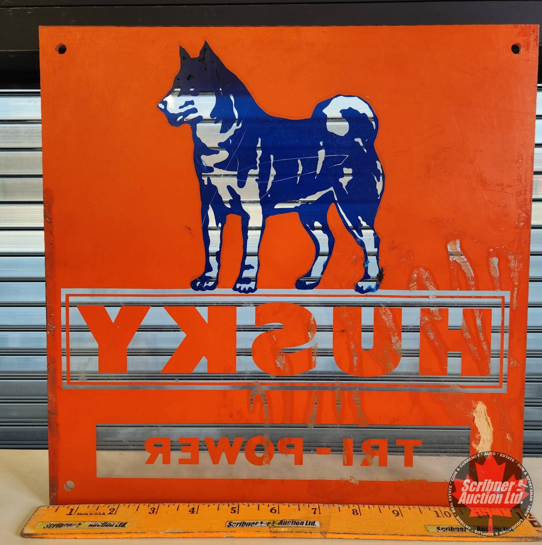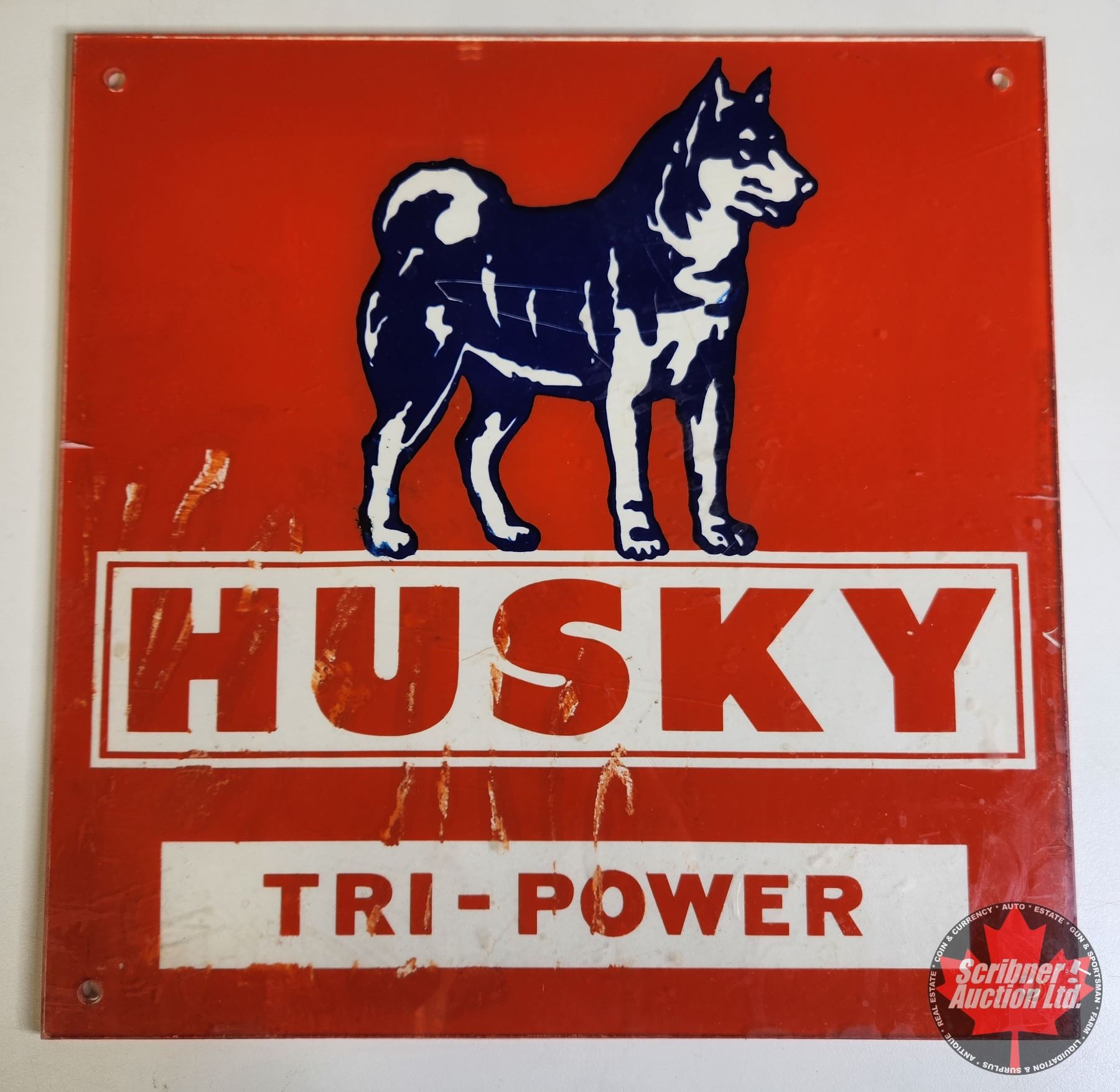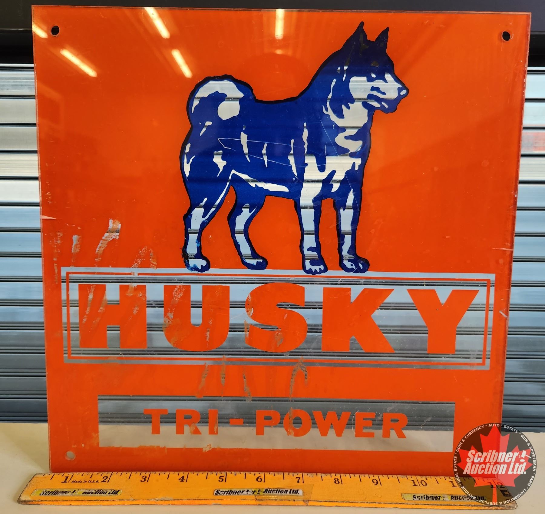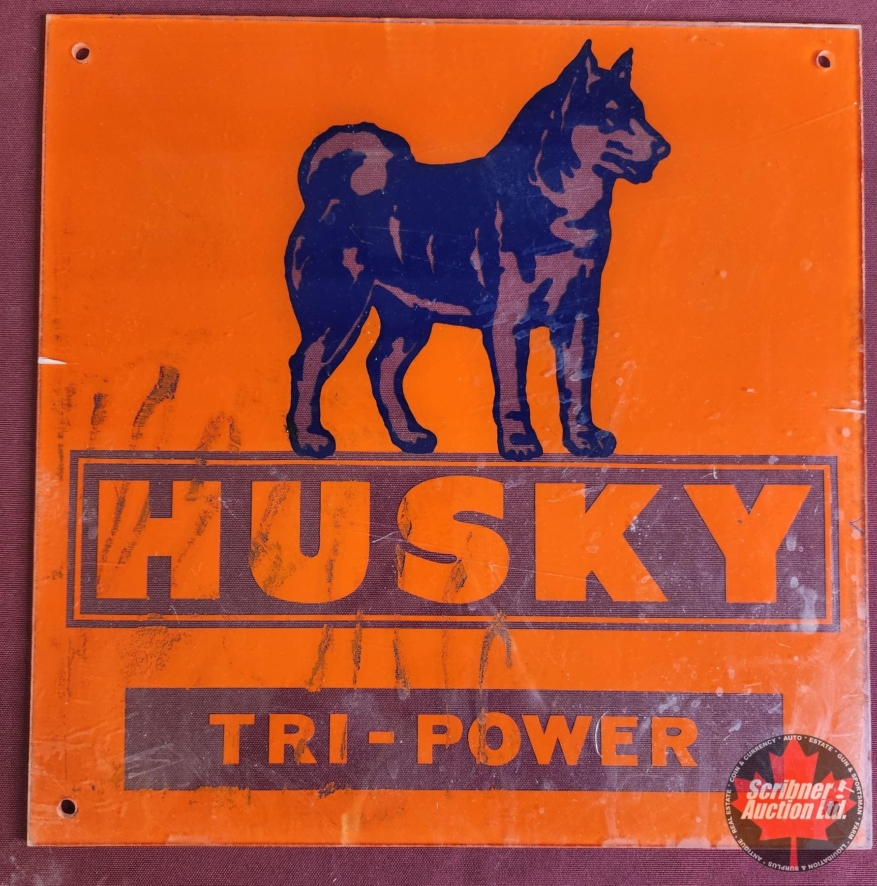 RARE Single Side Plexiglass Pump Sign "Husky Tri-Power" (12"H x 12"W) (SEE PICS!)