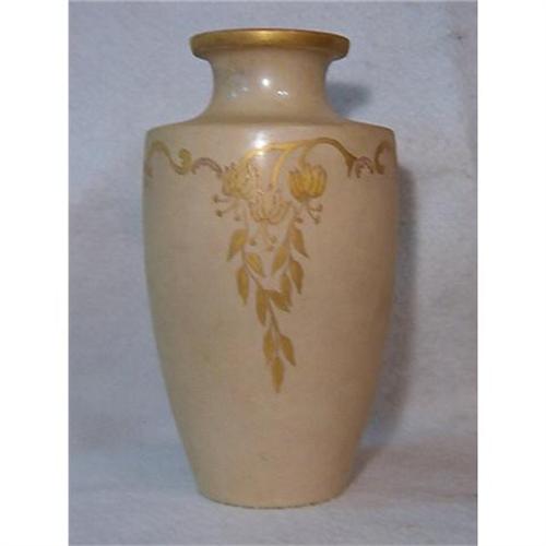 <tr><td>Title:RARE TAN VASE WITH GOLD PAINT MADE IN 1926 by</td></tr>