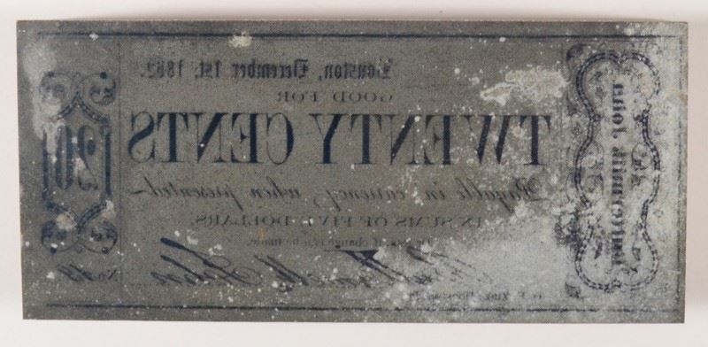 BUTTERMILK JOHN PRIVATE NOTE , HAS PHOTO OF NOTE PRODUCED AND ORIGINAL PRINTING BLOCK, USED TO PRODUCE CONFEDERATE COUNTY NOTES AND PRIVATE SCRIPT REFERENCE GUIDE , ESTIMATE, $300.00 TO $325.00