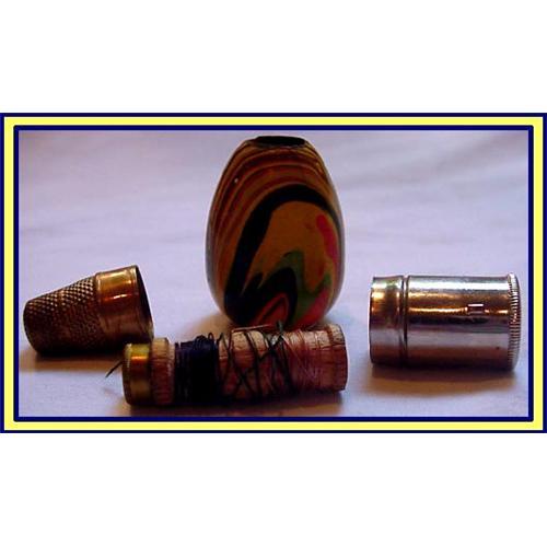 <tr><td>Title:RARE THIMBLE CONTAINER & SEWING BOBBIN</td></tr>