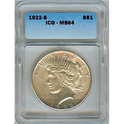 1922-S PEACE SILVER DOLLAR ICG MS64