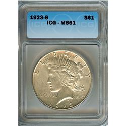 1923-S PEACE SILVER DOLLAR ICG MS61