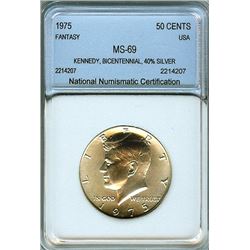 1975 KENNEDY FANTASY 50 CENTS - BICENTENNIAL - 40%SILVER NNC MS69