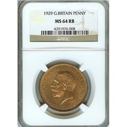 GREAT BRITAIN 1929 PENNY NGC MS64 RED BROWN LOOKS FULLY 65 RED!