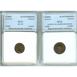 TETRICUS I 270-273 AD. ANTONINIANUS -HILARITAS & PAX REV.- BOTH NNC MS62