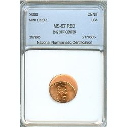 2000 LINCOLN CENT NNC MS67 RED 35% OFF CENTER ERROR