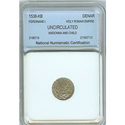 HOLY ROMAN EMPIRE 1538-KB FERDINAND I DENAR - MADONNA AND CHILD - NNC UNCIRCULATED