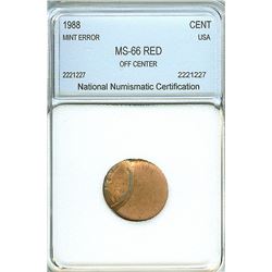 1988 LINCOLN CENT NNC MS66 RED OFF CENTER ERROR
