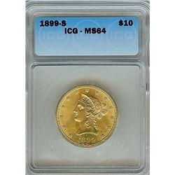 1899-S LIBERTY HEAD $10 GOLD EAGLE ICG MS64 RARE UNC!! HIGH GRADE!!
