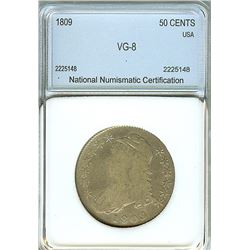 1809 CAPPED BUST SILVER 50 CENTS NNC VG-8