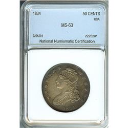 1834 CAPPED BUST SILVER HALF DOLLAR NNS MS63