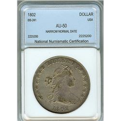 1802 DRAPED BUST SILVER DOLLAR BB241 NNC AU50 RARE!