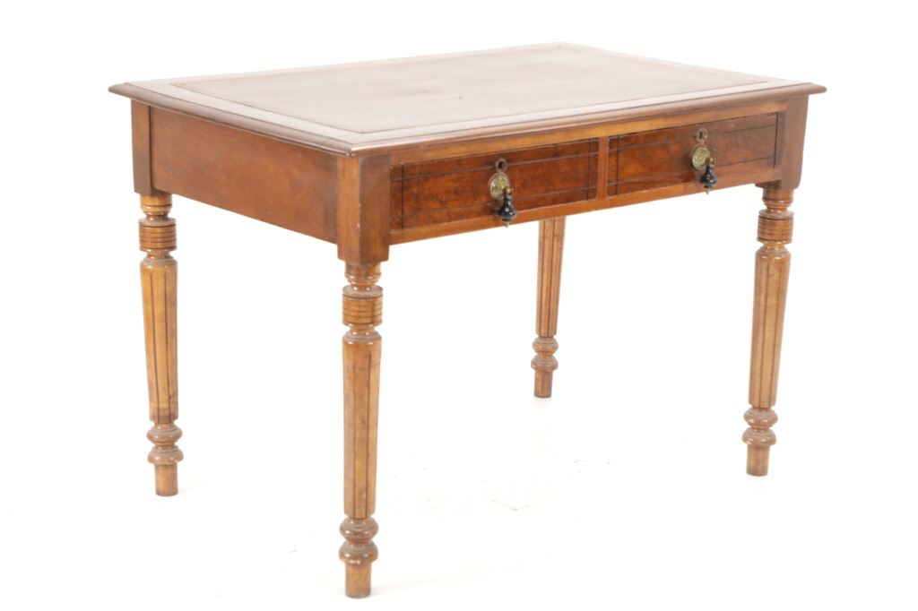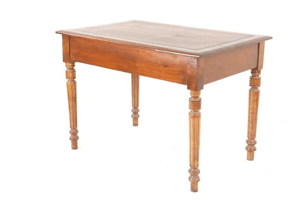 Featured in this lot is this Tombstone, Arizona resident Cleopatra Edmunds Hoenfeld & Heyma Table circa 19th century and was displayed in the Tombstone Western Heritage Museum; Provenance: From the Tombstone Western Heritage Museum in Tombstone, Arizona. The table features an ornate and beautiful construction that shows turned lathe construction legs and a leather inlay table top that accentuates the tables opulence. The table is marked inside as follows: Hoenfeld & Heyma dealer in Furniture & Carpets, Wallpaper & Cookery 434 Allen St. Tombstone, A.T. The tbale also comes with an original museum tag that reads as follows: Table from Miss Cleopatra Edmunds' house in Tombstone. - In 1888 her boyfriend, George Davis, shot himself in the head with a revolver after she rejected him. He did the deed on the street in front of her and his father. The house still stands on Safford St. Cleopatra lived in that house until she died of old age. The table is stamped on the inside with: Hoenfeld & Heyma dealer in Furniture & Carpets wallpaper & Cookery 434 Allen St. Tombstone, A.T. The condition of this Tombstone table is well preserved with with no obvious signs of damage to the table with some slight wear to the legs and in sections along the rim but otherwise shows a well preserved condition. The measurements of this Cleopatra table is 30" x 42" x 27 1/2". The collective weight of this table is TT-88