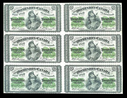 RARE UNCUT SHEET OF 6 DC-1c 1870 25 Cents notes. Notes are Unc to Choice Unc. A very rare and elusive item!