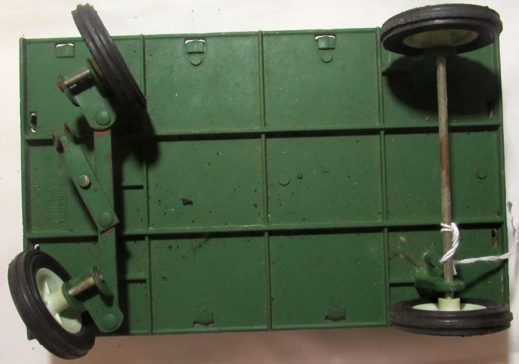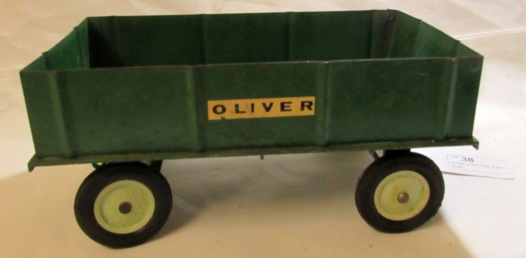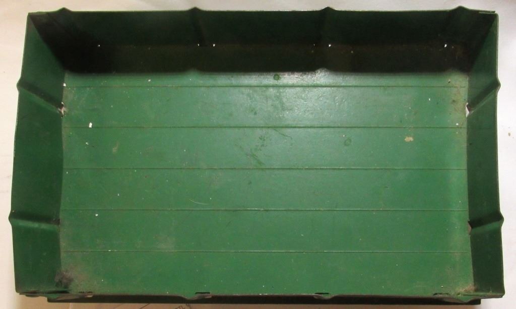 ABOUT 7.5" LONG X 4.5" WIDE X 3.5" TALL. NEEDS CLEANED. SOME LIGHT SCRATCHES AND CHIPS IN THE PAINT.