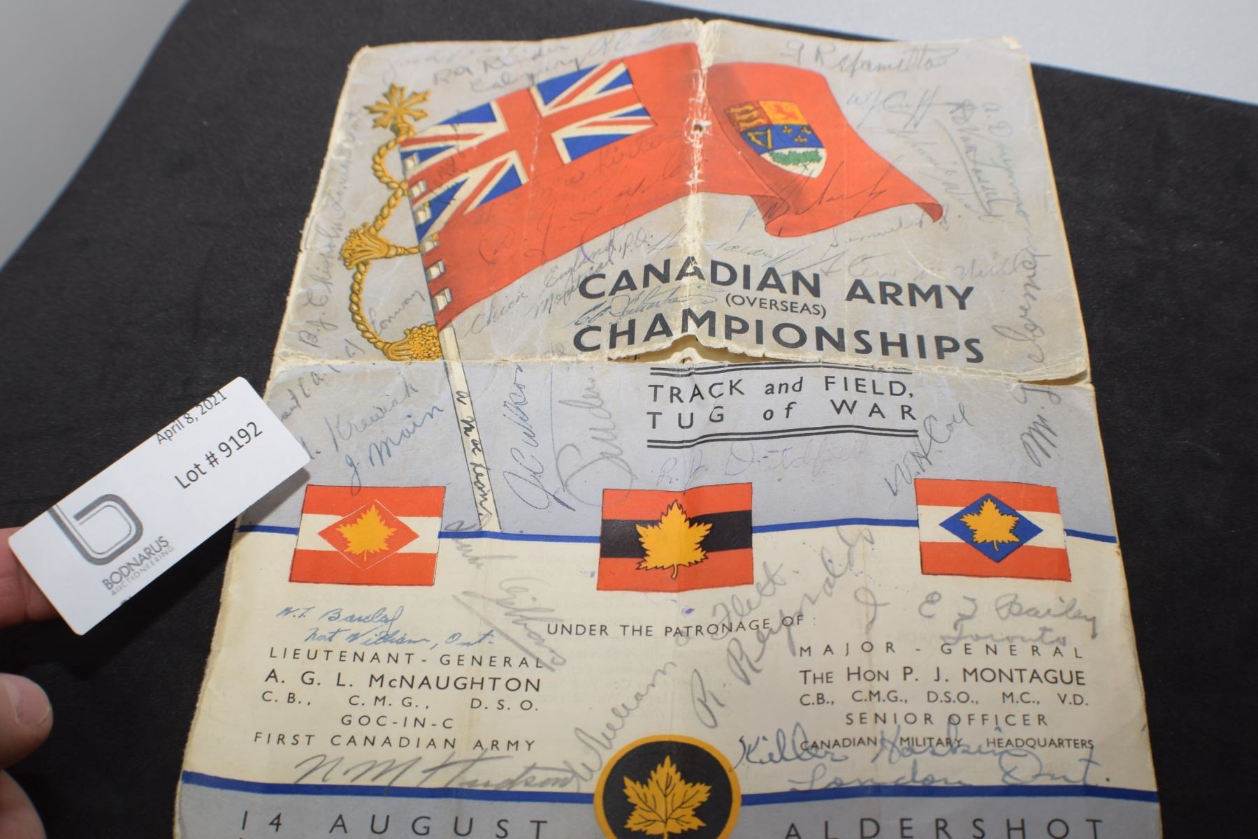 RARE WW11 SIGNED COPY OF CANADA ARMY CHAMPIONSHIP BOOKLET --POOR CONDITION