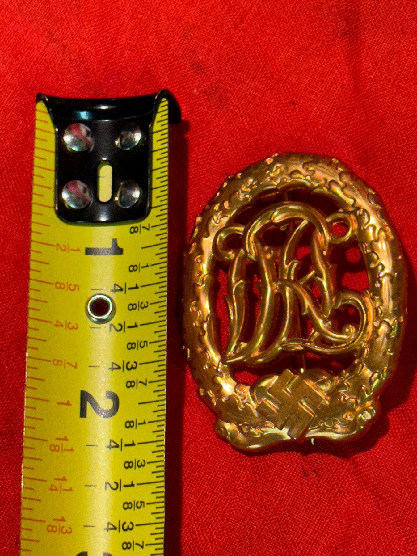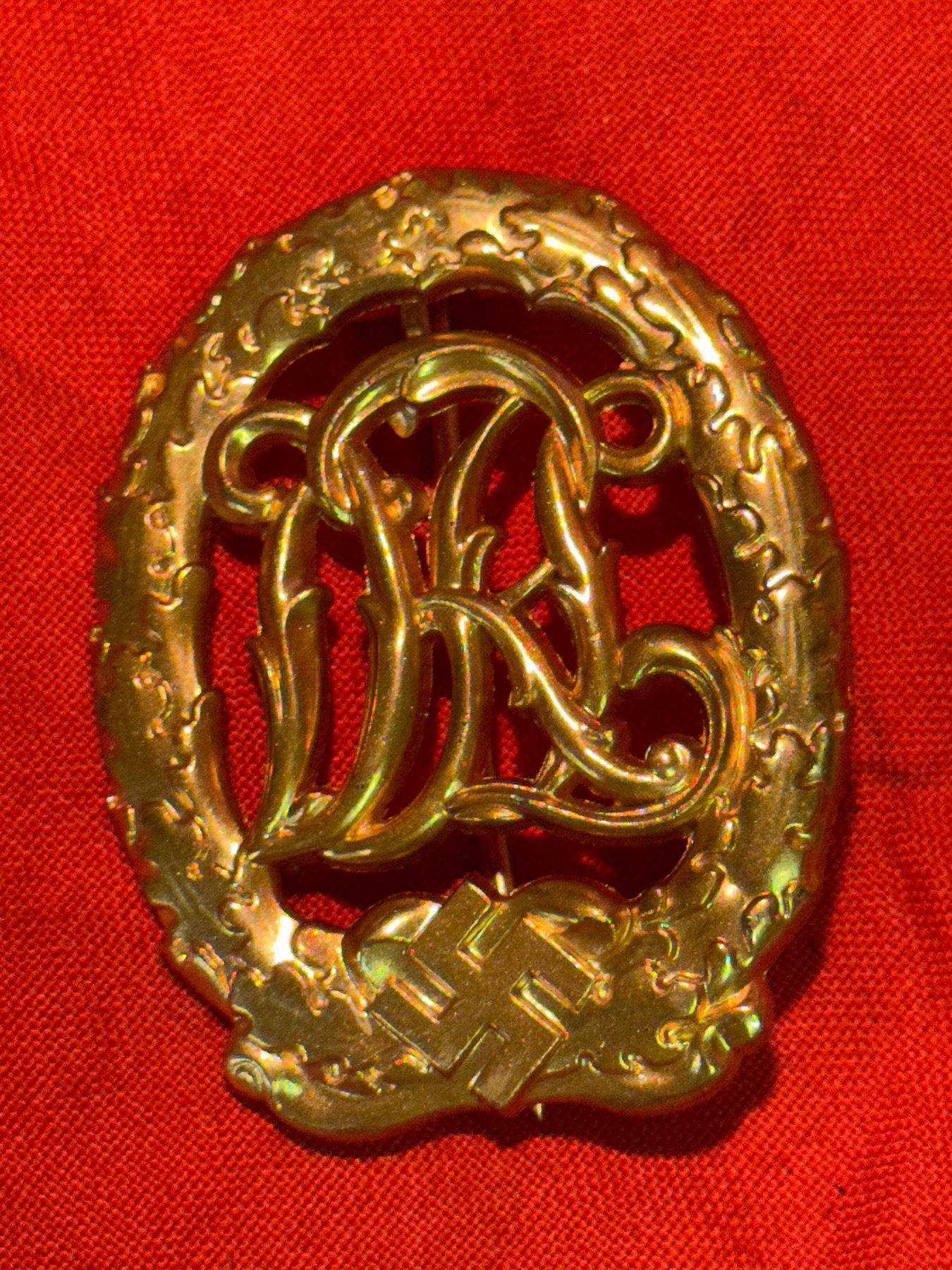 RARE WW2 GERMAN DRL SPORTS BADGE IN GOLD. A RARE FIND. IT IS IN MINT OVERALL SHAPE AND CONDITION WITH A BEAUTIFUL OVERALL PATINA. SHOWS GOOD WEAR AND USE. PLEASE VIEW ALL DETAILED PICTURES. A GREAT FIND AND AN EXCELLENT ADDITION TO YOUR COLLECTION.