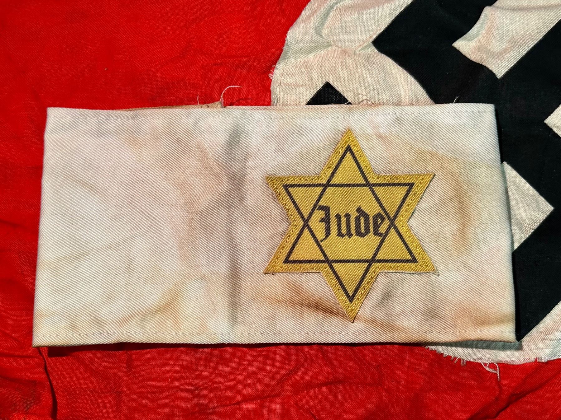 RARE WW2 GERMAN JEWISH CONCENTRATION CAMP ARMBAND JUDE WITH STAR OF DAVID. IT IS IN MINT OVERALL SHAPE AND CONDITION WITH A BEAUTIFUL OVERALL PATINA. SHOWS GOOD WEAR AND USE. PLEASE VIEW ALL DETAILED PICTURES. A GREAT FIND AND AN EXCELLENT ADDITION TO YOUR COLLECTION.