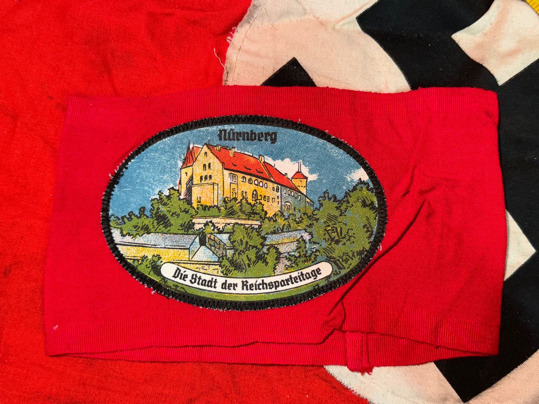 RARE WW2 GERMAN NURNBERG DIE STADT DER REICHSPARTEITAGE ARMBAND. A RARE FIND. IT IS IN MINT OVERALL SHAPE AND CONDITION WITH A BEAUTIFUL OVERALL PATINA. SHOWS GOOD WEAR AND USE. PLEASE VIEW ALL DETAILED PICTURES. A GREAT FIND AND AN EXCELLENT ADDITION TO YOUR COLLECTION.