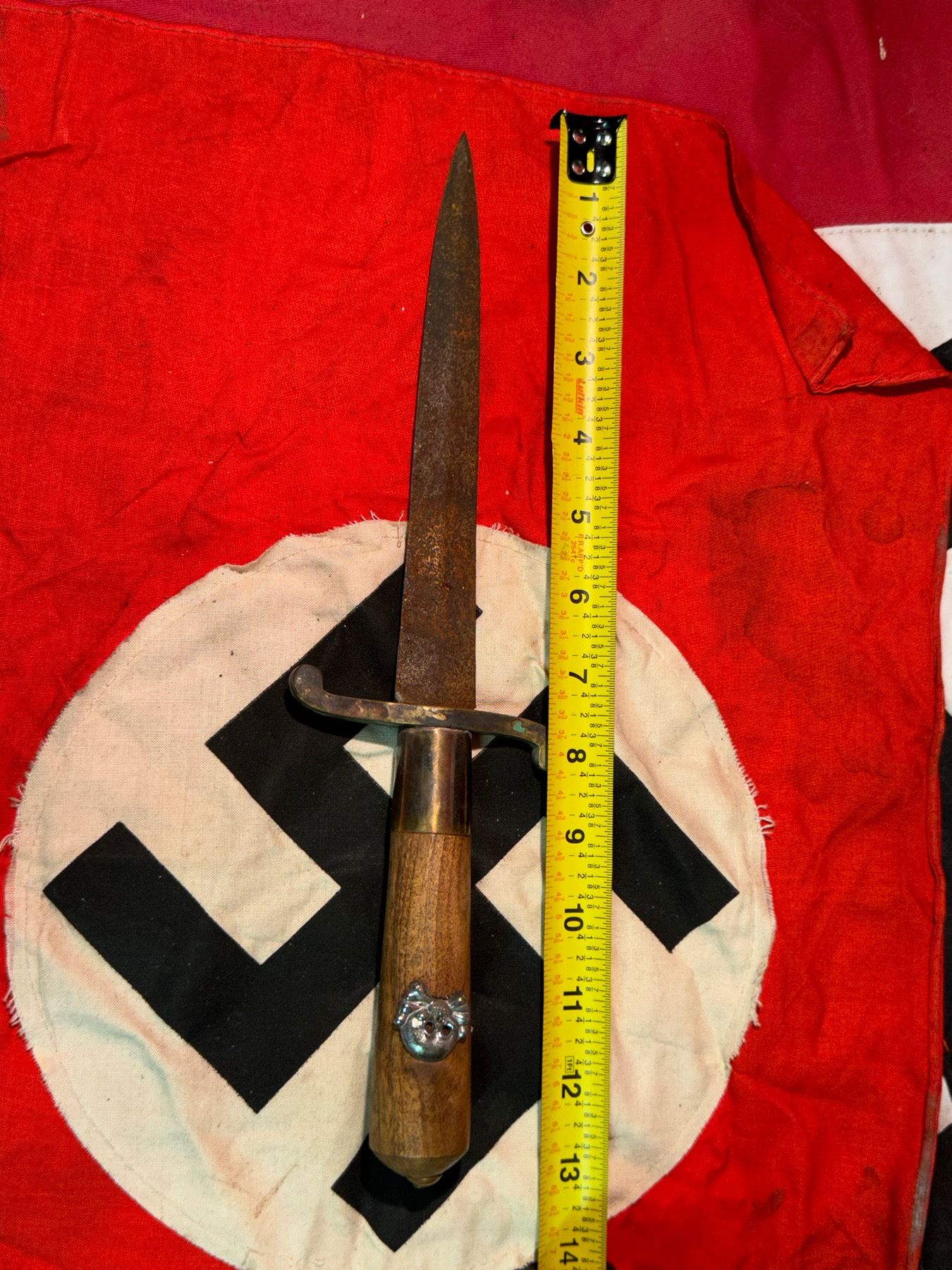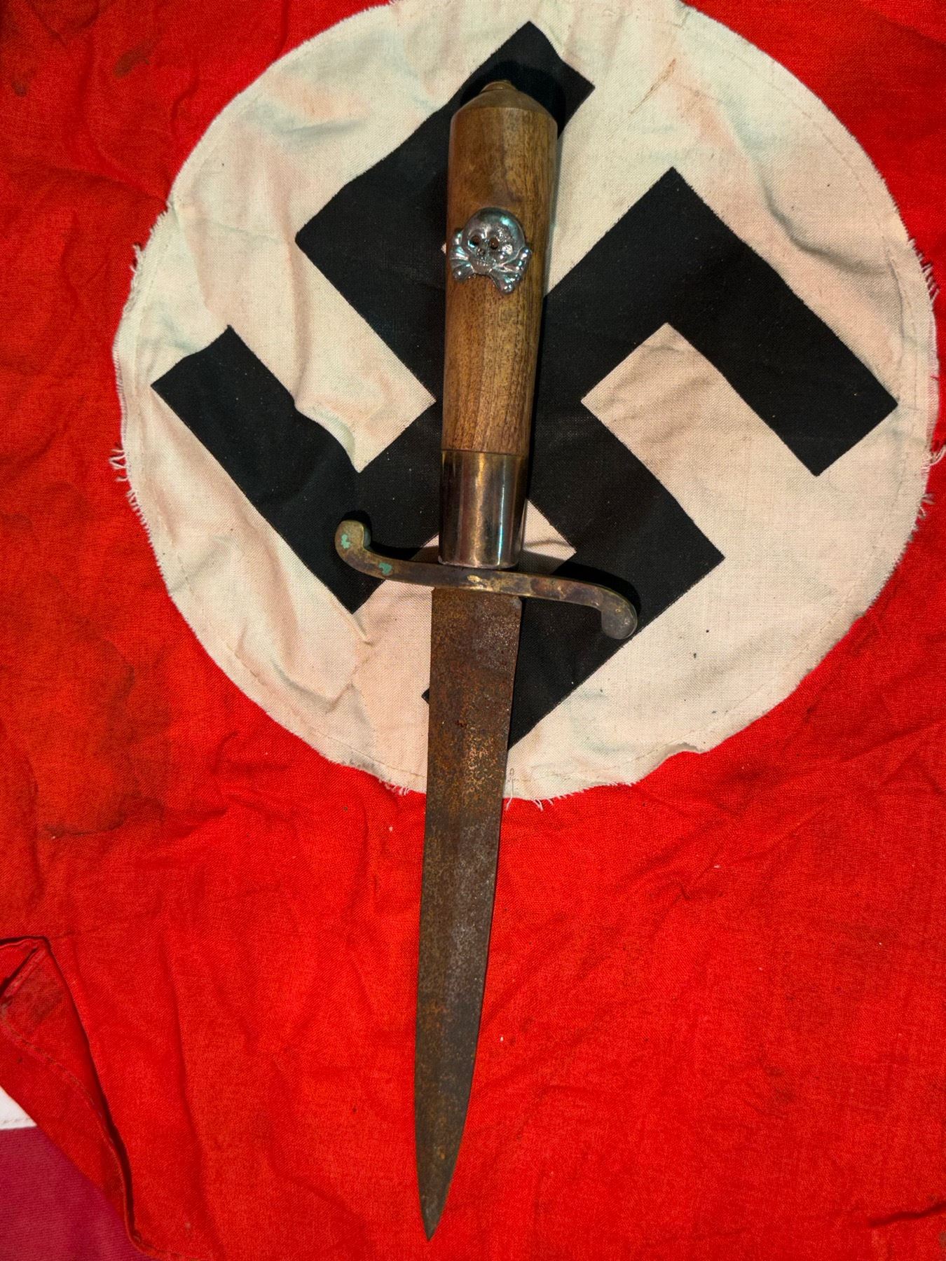 RARE WW2 GERMAN TOTENKOPF SS OFFICER FIGHTING DAGGER. A RARE FIND. IT IS IN MINT OVERALL SHAPE AND CONDITION WITH A BEAUTIFUL OVERALL PATINA. SHOWS GOOD WEAR AND USE. PLEASE VIEW ALL DETAILED PICTURES. A GREAT FIND AND AN EXCELLENT ADDITION TO YOUR COLLECTION.