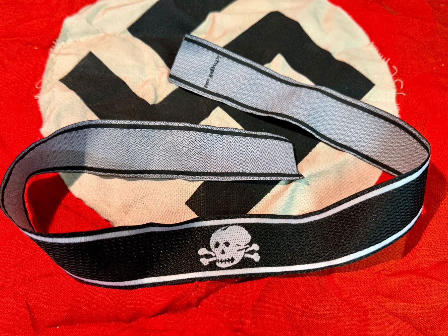 RARE WW2 GERMAN TOTENKOPF SS SKULL CUFF TITLE. A RARE FIND. IT IS IN MINT OVERALL SHAPE AND CONDITION WITH A BEAUTIFUL OVERALL PATINA. SHOWS GOOD WEAR AND USE. PLEASE VIEW ALL DETAILED PICTURES. A GREAT FIND AND AN EXCELLENT ADDITION TO YOUR COLLECTION.