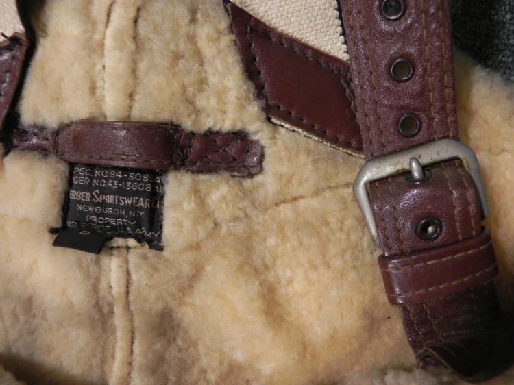RARE WWII USAAF TYPE B1 SHEEPSKIN LINED LEATHER BOMBER FLIGHT PANTS W/SUSPENDERS * NICE ORIGINALS W/ARMY AIR FORCE LARGE LOGO ON LEATHER-ALL LEATHER-SHEEPSKIN LINED-LEATHER & ELASTIC SUSPENDERS-SPEC TAG--READS MAKER GERBER SPORTSWEAR-NEWBURGH, NY--ZIPPER CORROSION & A FEW TEARS TO ON LEG *