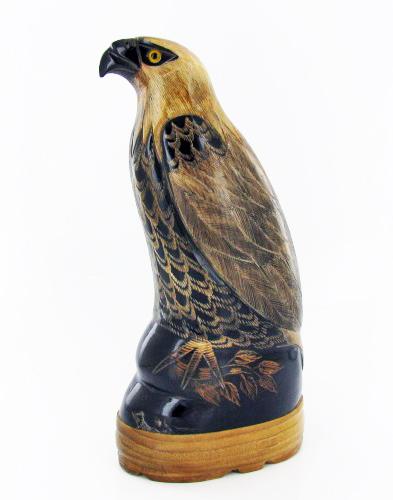 Excellent piece; finely carved in hawk image on water buffalo horn; 7.5"