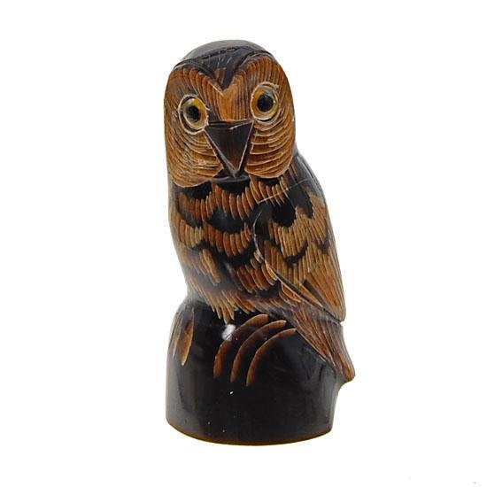 Excellent piece; finely carved Thai WATERBUFFSCRIM owl image on rare water buffalo horn; 2.5"; MULTIPLES AVAILABLE