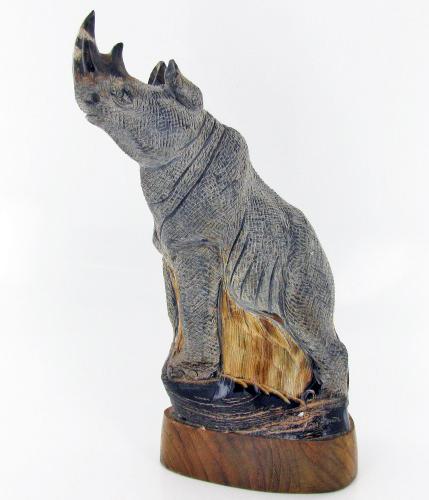 Excellent piece; finely carved in rhino image on water buffalo horn; 8.5"