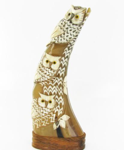 Excellent piece; finely carved on very rare WHITE water buffalo horn; 9.5"
