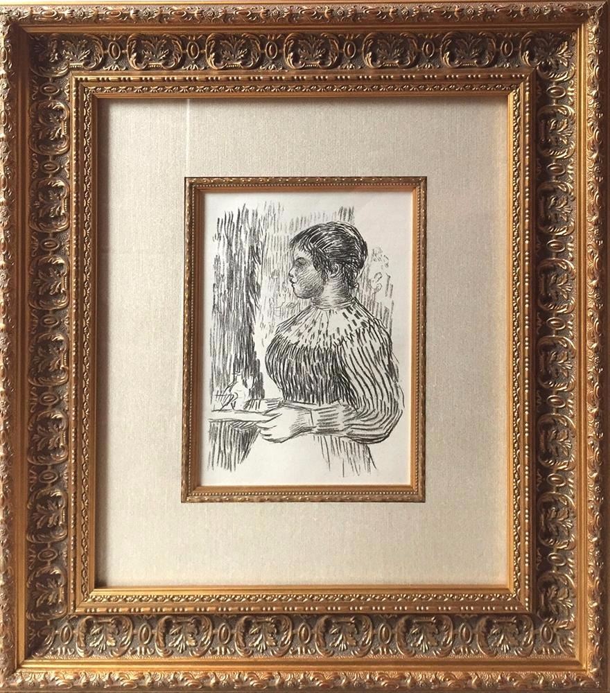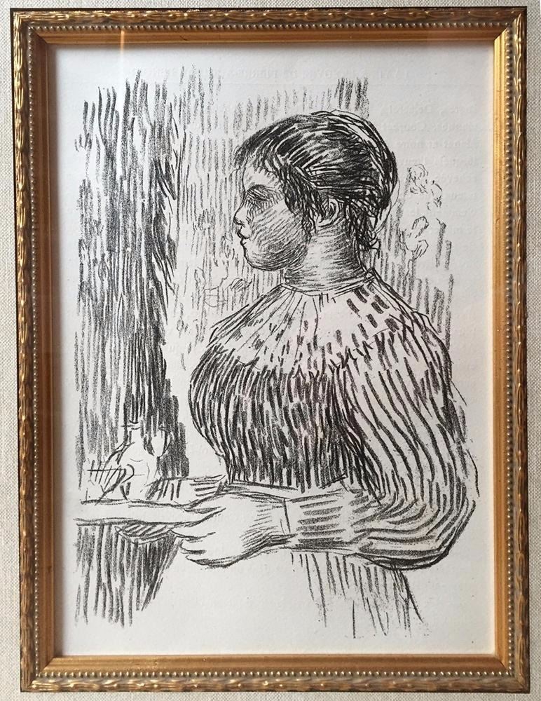 Pierre Auguste Renoir | Title of Art: La Femme Au Plateau | Medium: Lithograph in Black Ink on Velin d'Arches paper after the original. | Edition #: First Edition. One of 375 examples published by Vollard and executed by Emile Fequet in Paris on the 15th of December 1919. | Unframed Size: 10 x 7 | Framed Size: 21 x 18