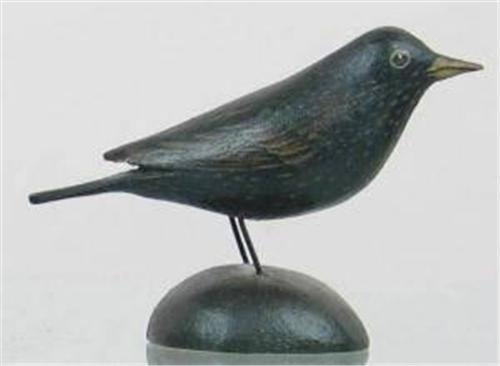 RARE miniature European starling by A. E. Crowell, East Harwich, MA. In SUPERB original condition. #25 and a rectangular brand on the bottom of the base. (decoy)