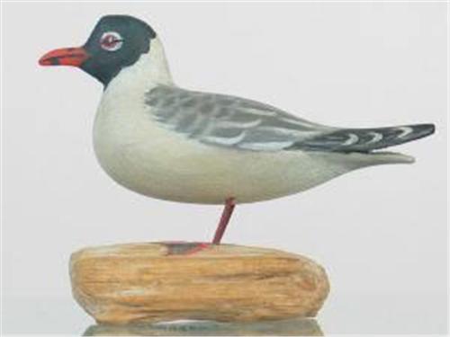 RARE miniature laughing gull on a rectangular piece of driftwood by A. E. Crowell, East Harwich, MA. In XOC in all respects. (decoy)