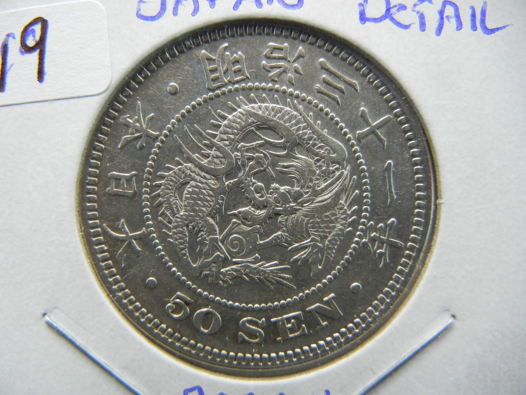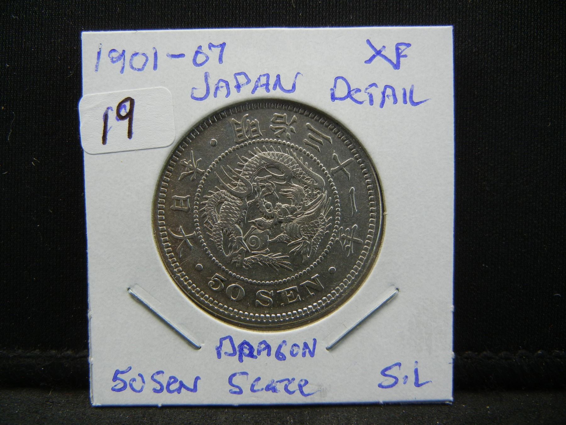 RARITY ALERT. 1901-07 Japanese 50 Sen Dragon. Extremely Fine detail.