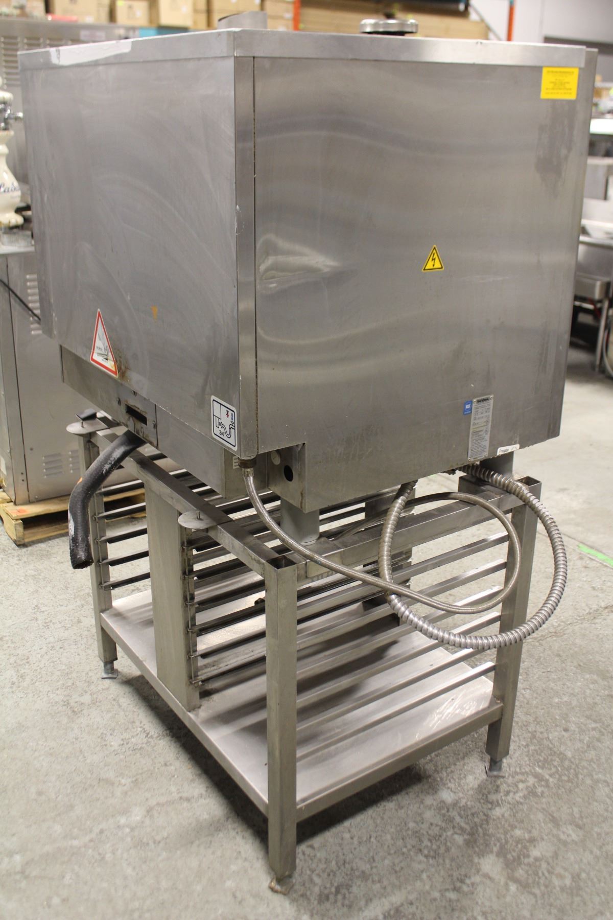 M# CCM61, THREE PHASE, 208V, 9.6KW. COMES WITH CUSTOM EQUIPMENT STAND. OVEN DIMENSIONS: 35.5" X 30" X 32.5", STAND: 35.5" X 25" X 29.5". TWO 7 SLOT SOTRAGE / COOLING SECTIONS. DIRECT POWER