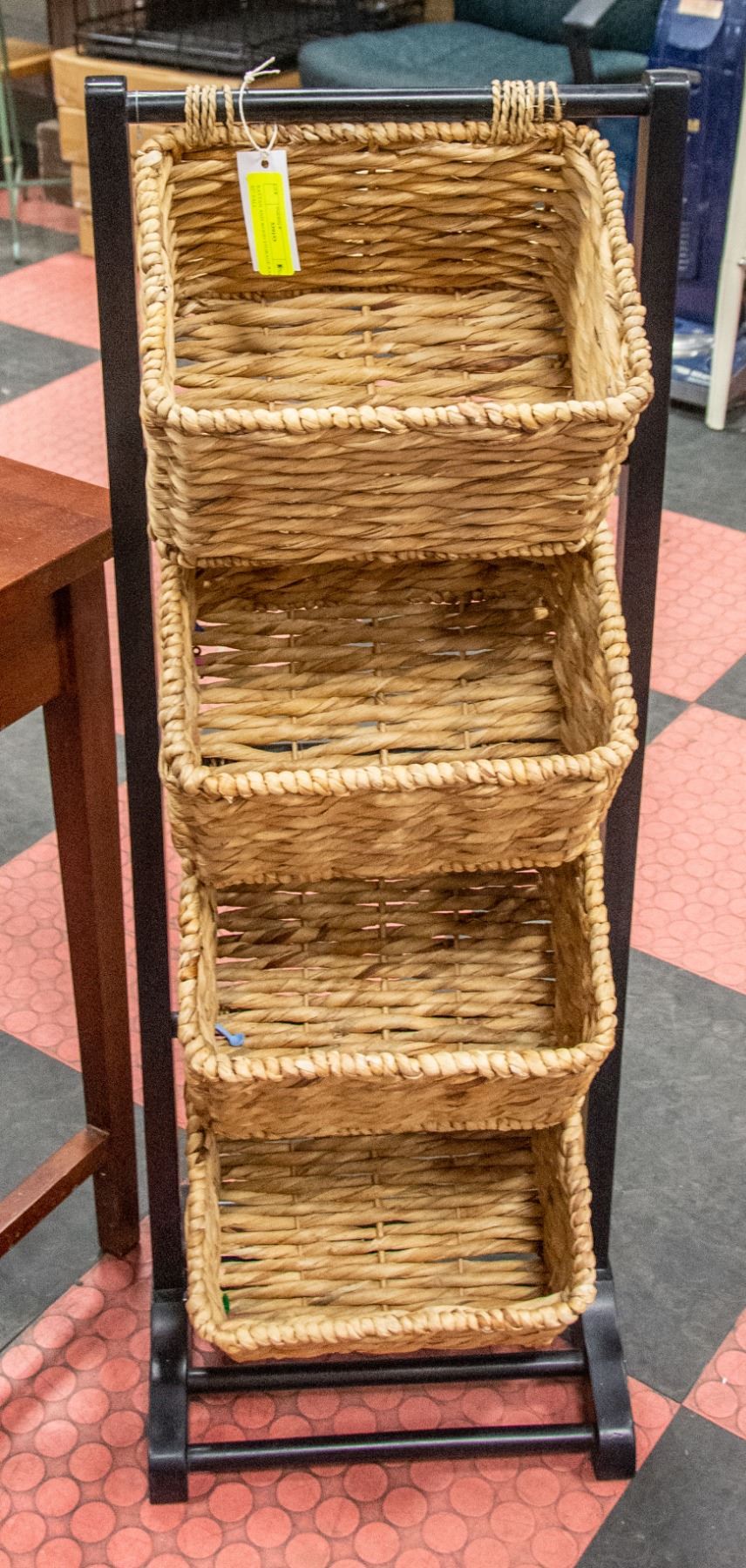 RATTAN AND WOOD STORAGE RACK 42" TALL