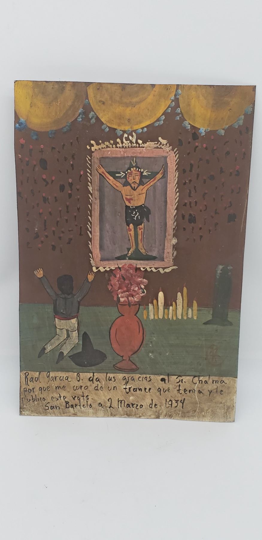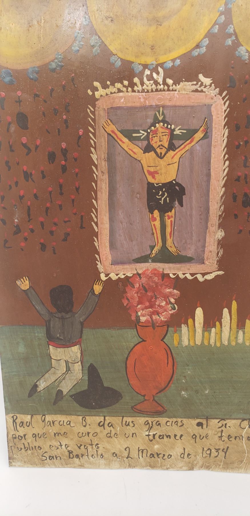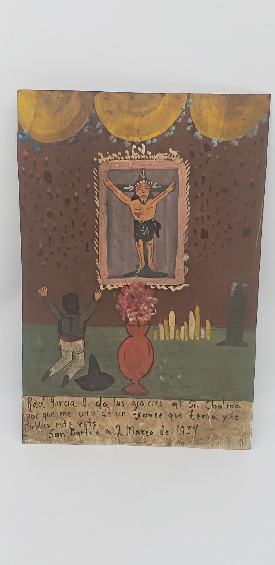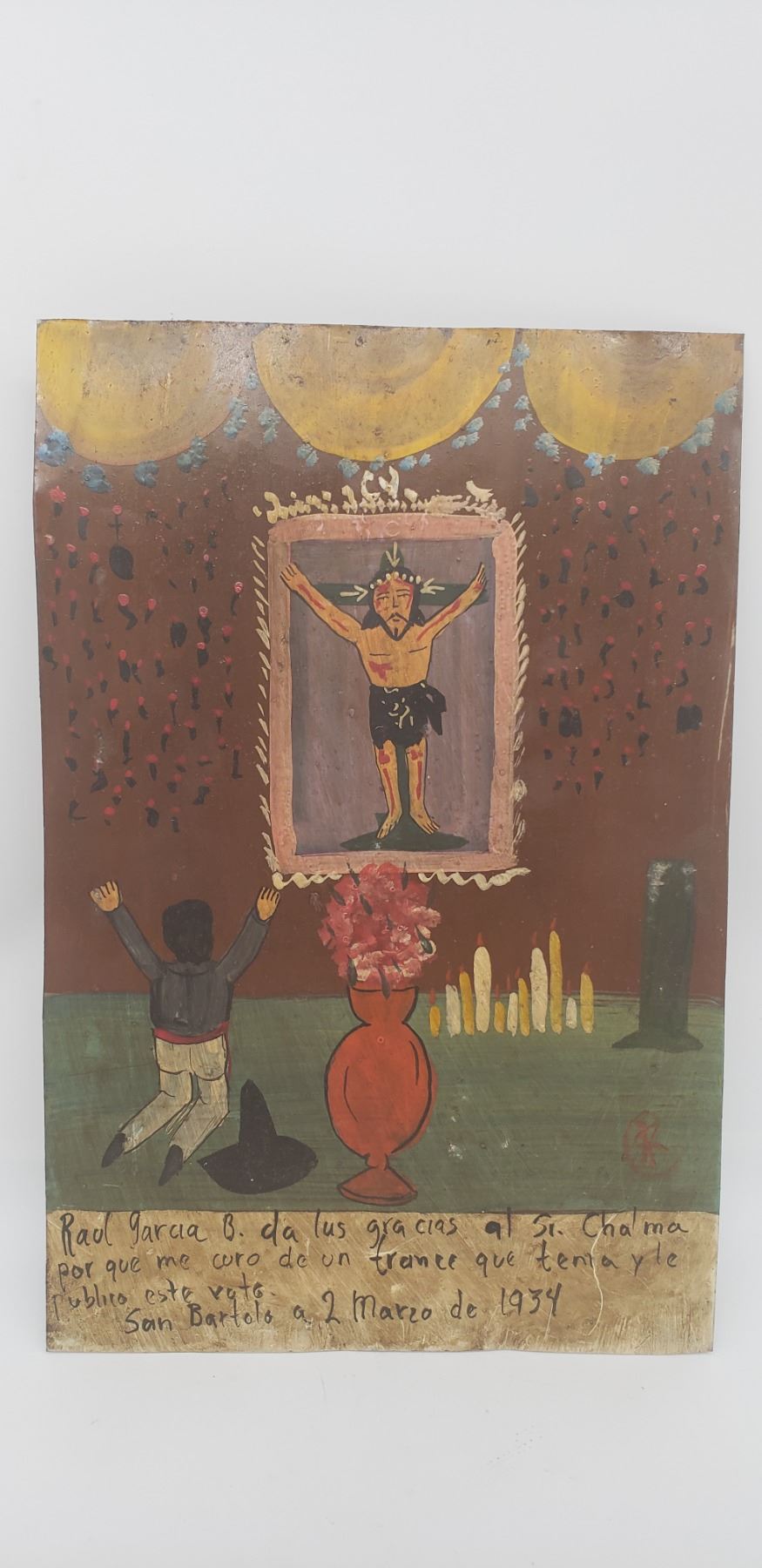 Raul Garcia Mexican Folk Art on Tin San Bartolo March 2nd 1934 Piece is 12" x 8" All items Located in in Hollywood Florida Warehouse For Shipping Call today for quote they have item numbers and Pak Mail is available for all your custom packaging and shipping needs. We can package, palletize, crate, insure and ship to any Domestic or International location. All packaging and shipping fees must be paid in full before shipment is released. On international shipments, consignee is responsible for all Duties, Taxes, Customs Clearance or any destination fees that apply. Please visit our website @ www.pakmail.com/us770 for contact information or to get a quote. (Let us know you are a winning bidder from the Puckett auction so we can correctly arrange pick up for your item