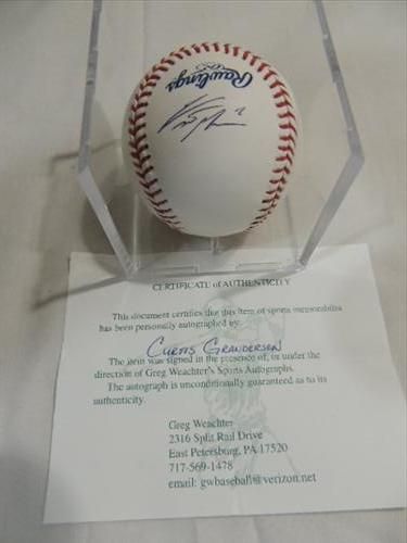 RAWLINGS BASEBALL AUROGRAPH CURTIS GRANDERSON COA. INCLUDESC OA FROM GREG WEACHTER. AS SHOWN. VIEW PICTURE FOR DETAIL.