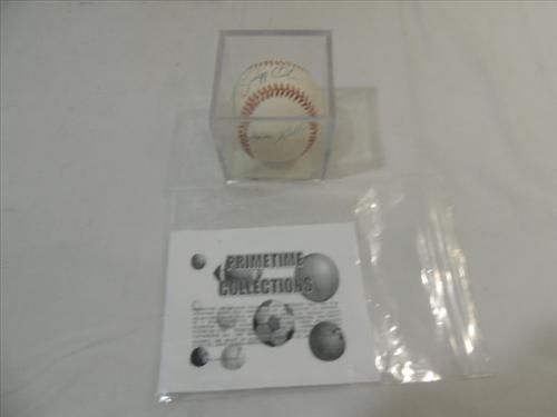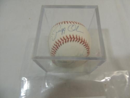 RAWLINGS BASEBALL AUTOGRAPH GREG OLSON & JEROME WALTON COA. INCLUDES COA FROM PRIMETIME COLLECTION. AS SHOWN. VIEW PICTURE FOR DETAIL.