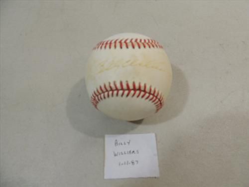 RAWLINGS BASEBALL AUTOGRAPHED BILLY WILLIAMS. SIGNED ON 1/11/87. NO COA. AS SHOWN. VIEW PICTURE FOR DETAIL. PLEASE BE ADVISED, AND INFORMED REGARDING SIGNATURES OR AUTOGRAPHS THAT WE SELL AT AUCTION: WE ARE NOT AUTHENTICATORS, AND WE DO NOT AUTHENTICATE, OR VALIDATE ANY AUTOGRAPHS OR SIGNATURES THAT WE OFFER AT AUCTION. SOME AUTOGRAPHS OR SIGNATURES MAY COME WITH AN AUTHENTICATION FROM ANY ONE OF LITERALLY HUNDREDS OF AUTHENTICATORS ACROSS THE COUNTRY, AND AROUND THE WORLD. WE DO NOT ENDORSE ANY AUTHENTICATOR, NOR DO WE GUARANTEE THAT ANY AUTOGRAPH OR SIGNATURE IS AUTHENTIC, OR THAT IT WILL PASS AUTHENTICATION BY ANY AUTHENTICATOR. ALL AUTOGRAPHS OR SIGNATURES ARE SOLD