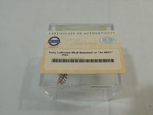 RAWLINGS BASEBALL AUTOGRAPHED TONY LARUSSA COA. INLCUDES COA FROM STEINER # LARUBAS000005. AS SHOWN. VIEW PICTURE FOR DETAIL. PLEASE BE ADVISED, AND INFORMED REGARDING SIGNATURES OR AUTOGRAPHS THAT WE SELL AT AUCTION: WE ARE NOT AUTHENTICATORS, AND WE DO NOT AUTHENTICATE, OR VALIDATE ANY AUTOGRAPHS OR SIGNATURES THAT WE OFFER AT AUCTION. SOME AUTOGRAPHS OR SIGNATURES MAY COME WITH AN AUTHENTICATION FROM ANY ONE OF LITERALLY HUNDREDS OF AUTHENTICATORS ACROSS THE COUNTRY, AND AROUND THE WORLD. WE DO NOT ENDORSE ANY AUTHENTICATOR, NOR DO WE GUARANTEE THAT ANY AUTOGRAPH OR SIGNATURE IS AUTHENTIC, OR THAT IT WILL PASS AUTHENTICATION BY ANY AUTHENTICATOR. ALL AUTOGRAPHS OR SIGNATURES ARE SOLD
