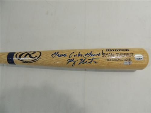 RAWLINGS BASEBALL BAT AUTOGRAPHED RYAN THERIOT COA. INCLUDES A COA STICKER MAJOR LEAGUE BASEBALL AUTHENTICATION #266729 LH & MOUNTED MEMORIES #0283429. AS SHOWN. VIEW PICTURE FOR DETAIL.