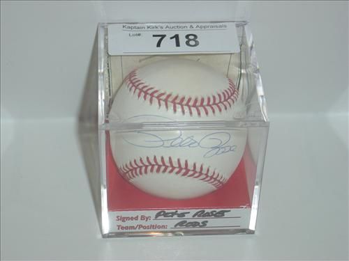 RAWLINGS NATIONAL LEAGUE OFFICIAL BASEBALL SIGNED BY PETE ROSE OF THE CINCINNATI REDS. BALL COMES WITH CERTIFICATE OF AUTHENTICITY FROM THE SCORE BOARD, INC. AS SHOWN. VIEW PICTURE FOR DETAIL.