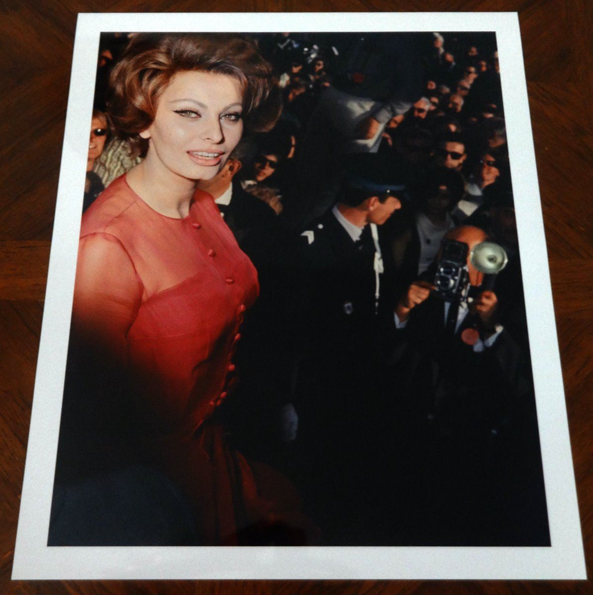 RAY BELLISARIO: Sophia Loren in the crowd at the Cannes film festival in 1966. Edition 1 of 25. Professionally produced glossy print on professional photo paper. Image: 16x20 inches on 18x22 paper. Produced with the image being professionally cleaned from the original 1966 negative. Dubbed London's first paparazzo -- a term he hates -- Bellisario was a constant presence at royal events in the 1960s and 70s and at film locations and red carpet events. Capturing pictures of the royals, Charlie Chaplin, Sophia Loren, Brigitte Bardot.