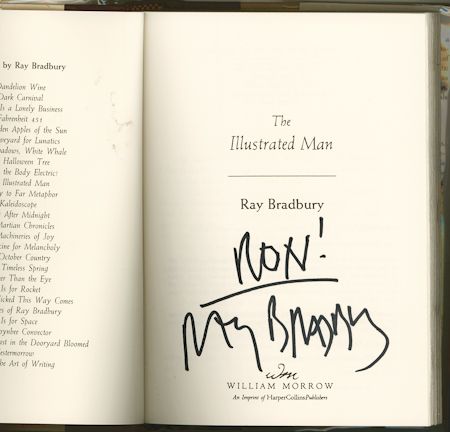(b. 1920) American author of numerous science fiction works, including The Martian Chronicles, Fahrenheit 451, and Dandelion Wine. A fine pair of two signed copies of National Book Award-winning books, the first Now and Forever (New York: HarperCollins, 2007), first edition, hardbound, boldly signed on the half-title page, along with The Illustrated Man (New York: HarperCollins, 1999), hardbound, also signed on the half-title page. Fine condition, two pieces.