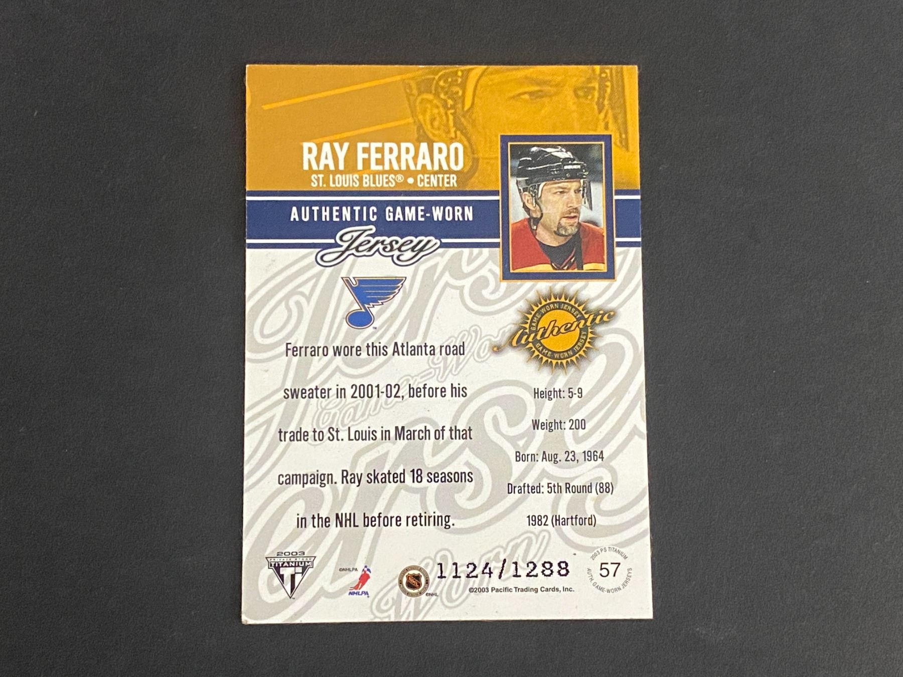 RAY FERRARO ST LOUIS BLUES JERSEYCARD AUTOGRAPH CARD #1124 OF 1288 MADE